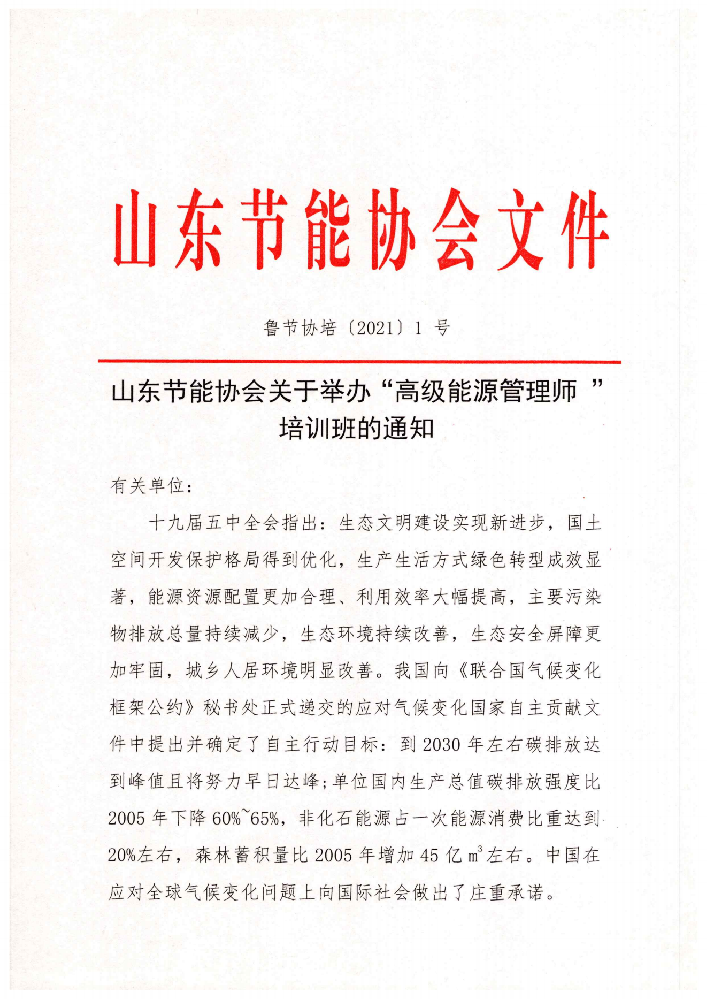 山东节能协会关于开展高级能源管理师培训的通知2021.5